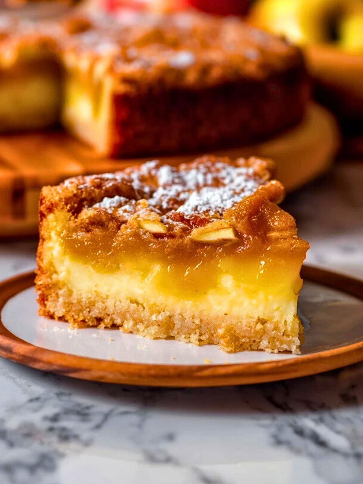 - Äpfel – Die Hauptrolle! Sie bringen Frische, Fruchtigkeit und einen leicht säuerlichen Kontrast zur Süße des Kuchens.