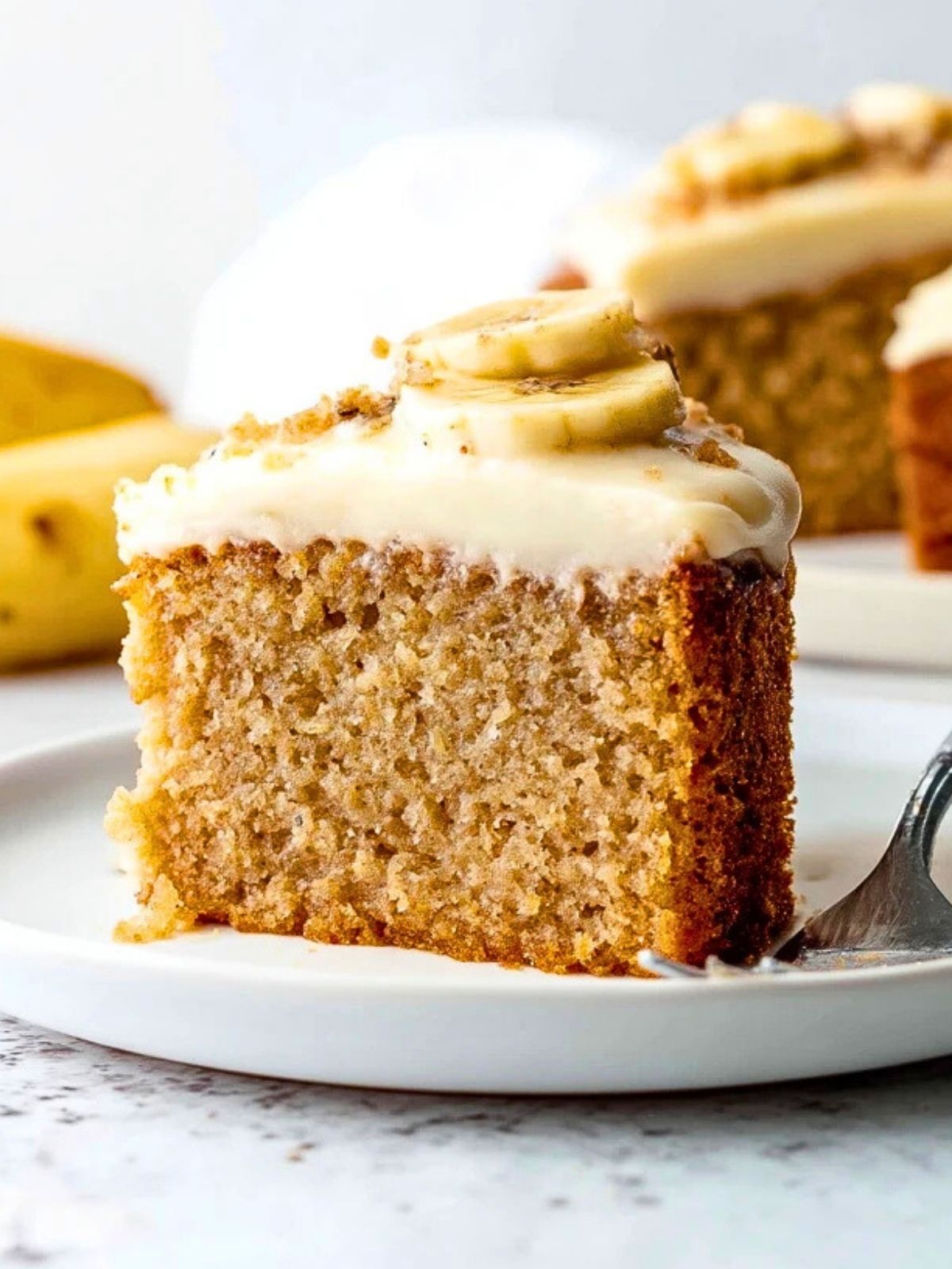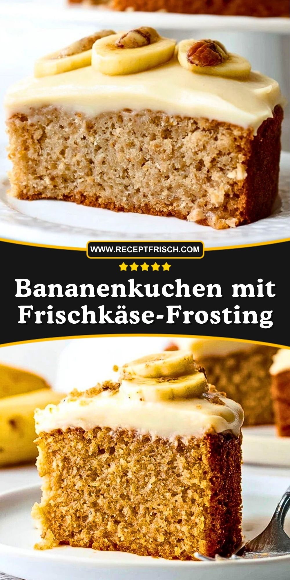 Ein herrlich saftiger Bananenkuchen mit cremigem Frischkäse-Frosting. Perfekt zur Verwertung reifer Bananen und ideal für jede Kaffeetafel.