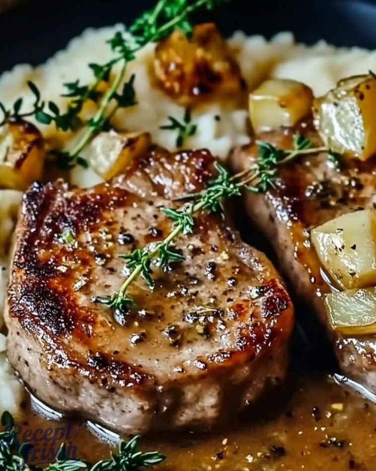 Saftige Schweinekoteletts in einer aromatischen Knoblauch-Butter-Sauce, serviert mit cremigem Kartoffelpüree. Dieses einfache, aber raffinierte Gericht ist perfekt für ein köstliches Abendessen und in nur 35 Minuten zubereitet.