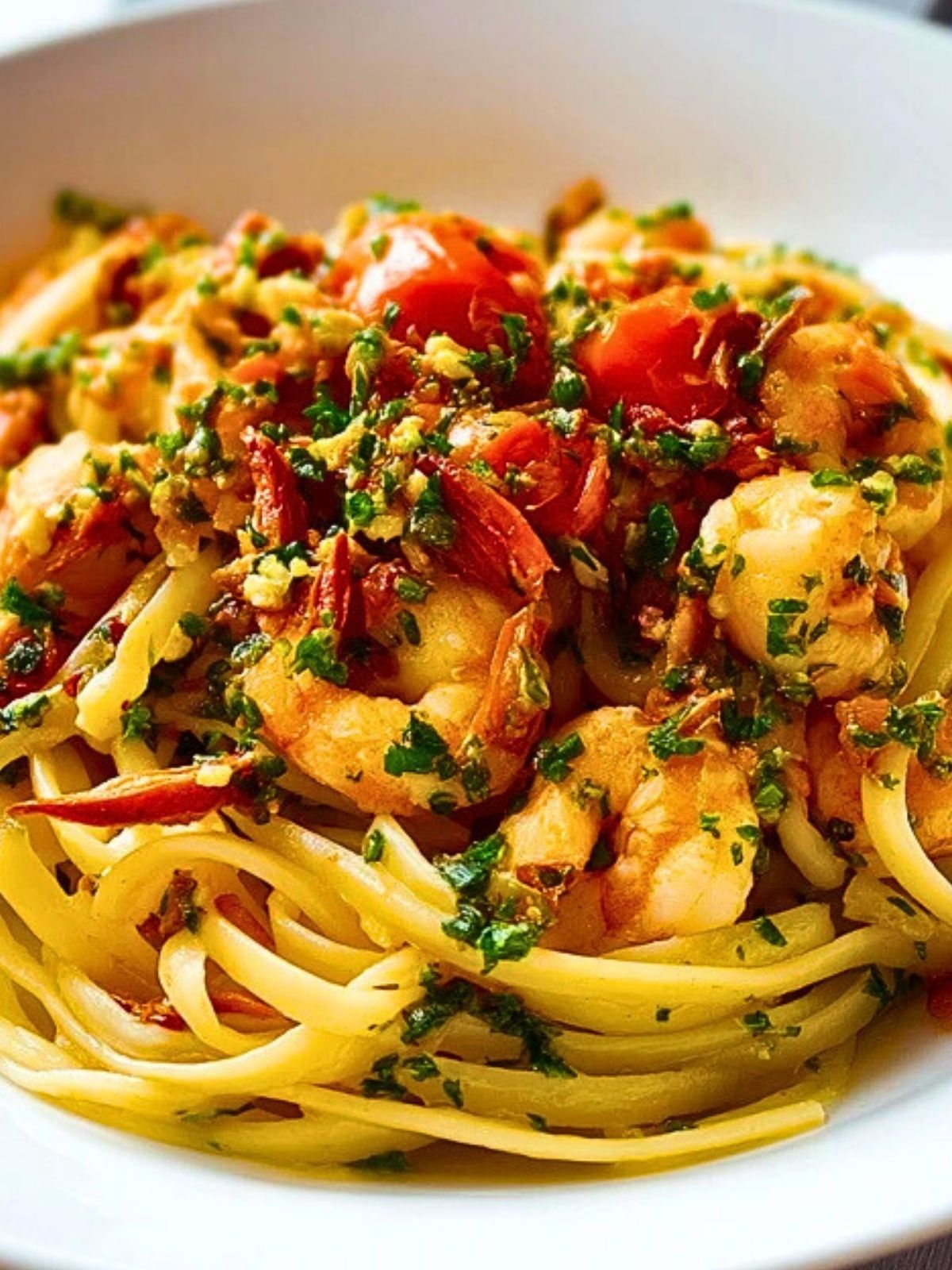 Diese Chili-Knoblauch-Garnelenpasta ist ein schnelles, mediterranes Pastagericht mit saftigen Garnelen, intensivem Knoblauch und fein dosierter Schärfe. Zitronensaft und Petersilie sorgen für Frische und Balance.