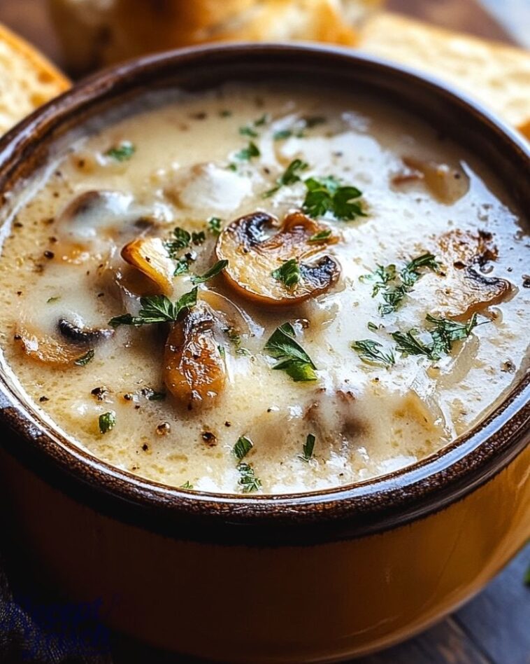 Diese cremige französische Zwiebel- und Pilzsuppe ist ein wahres Wohlfühlgericht – reichhaltig, aromatisch und voller Tiefe. Ob als Vorspeise oder Hauptgericht mit knusprigem Brot serviert, sie bringt französischen Charme auf den Teller. Speichern Sie das Rezept auf Pinterest und teilen Sie es mit Familie und Freunden, damit auch sie diesen Genuss erleben können!