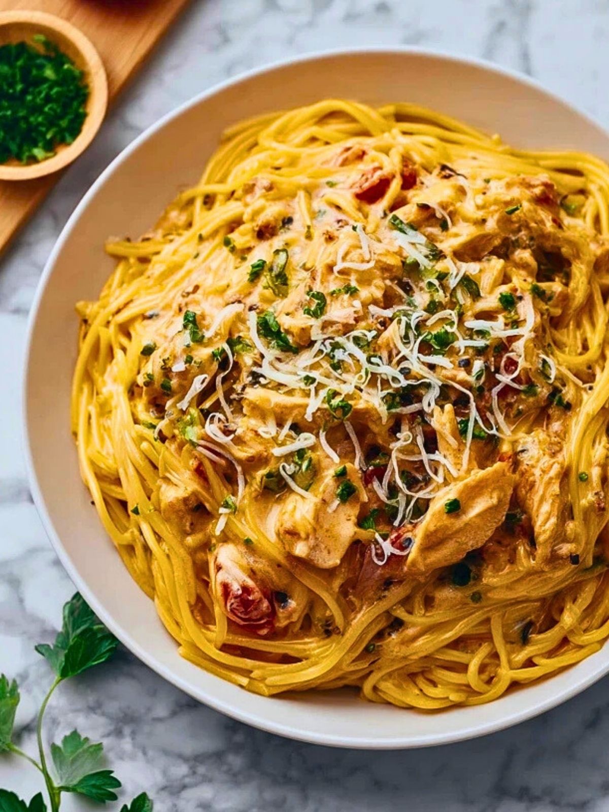 Wer hätte gedacht, dass cremige Spaghetti mit zartem Hähnchenfleisch und würzigem Käse so unkompliziert sein können? Dieses Rezept für Cremige Hähnchen-Spaghetti aus dem Slow Cooker verbindet saftige Hähnchenbrust, zart geschmolzenen Käse, fruchtige Tomaten und pikante Gewürze zu einem echten Wohlfühlgericht. Während der Slow Cooker die meiste Arbeit übernimmt, bleibt mehr Zeit zum Entspannen – am Ende erwartet dich ein Pasta-Traum, der an die beste Hausmannskost erinnert, aber mit modernem Komfort.