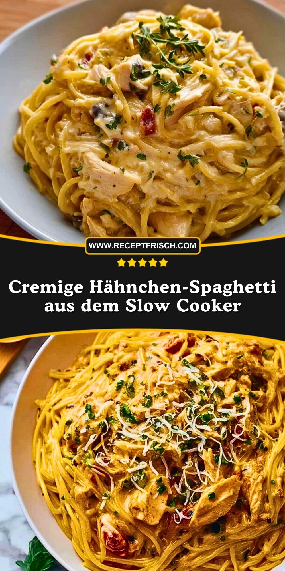 Keywords: Cremige Hähnchen-Spaghetti, Slow Cooker, Käse, Familienrezept