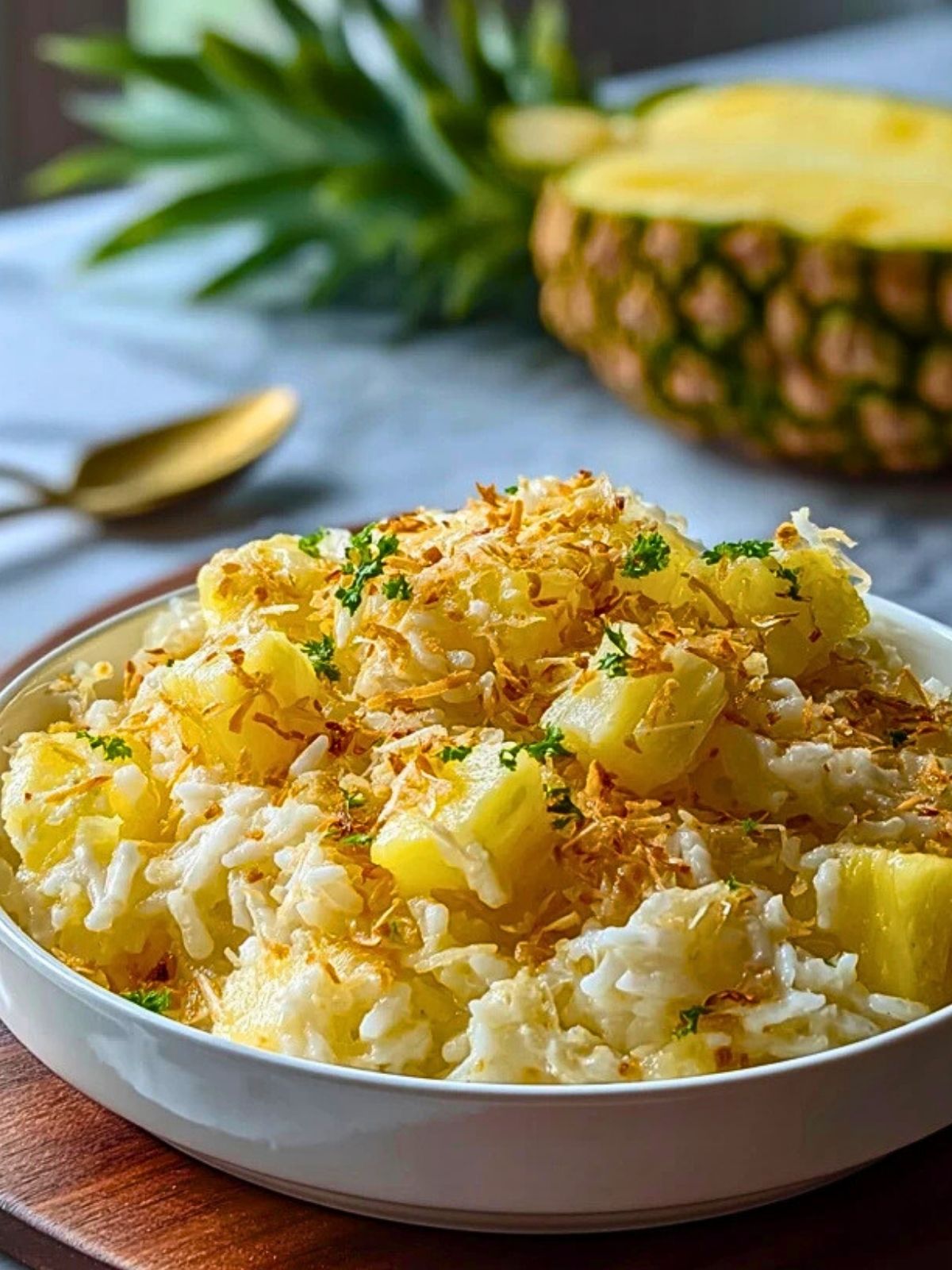 Ob als Beilage zu asiatischen Currys, zu gegrilltem Fisch oder einfach solo: Kokosnuss-Ananas-Reis ist immer ein Highlight. Die dezente Süße, die tropische Note und das knusprige Kokostopping machen ihn zum Favoriten für alle, die Abwechslung auf dem Teller lieben.