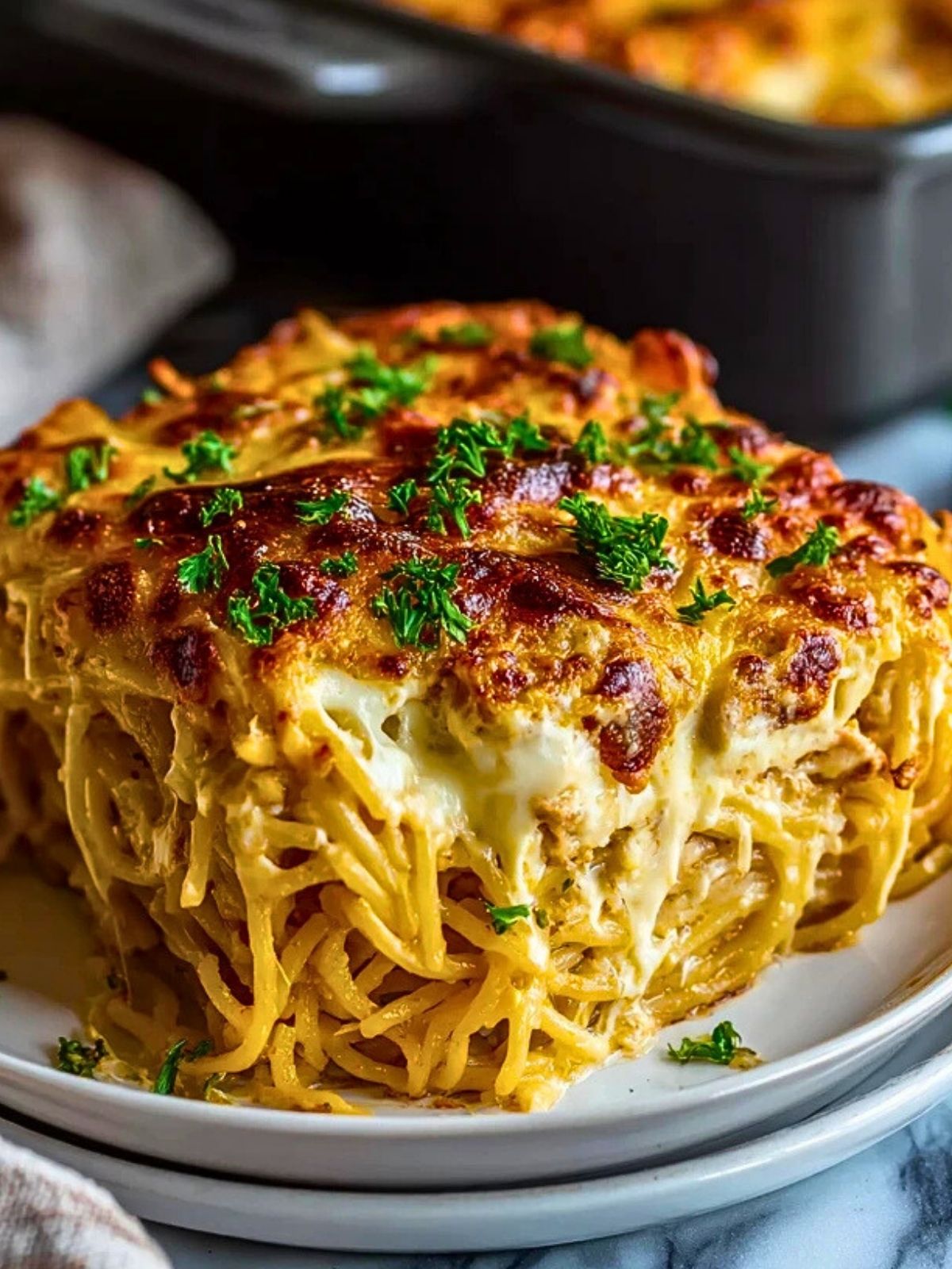 Ob als Familienessen, beim geselligen Abend mit Freunden oder als Partykracher: Dieser Spaghetti-Auflauf begeistert durch seine unwiderstehliche Cremigkeit, deftigen Aromen und die verführerische Käsekruste. Ideal, wenn du Gäste verwöhnen möchtest oder einfach Lust auf einen besonders schmackhaften Nudelauflauf hast!