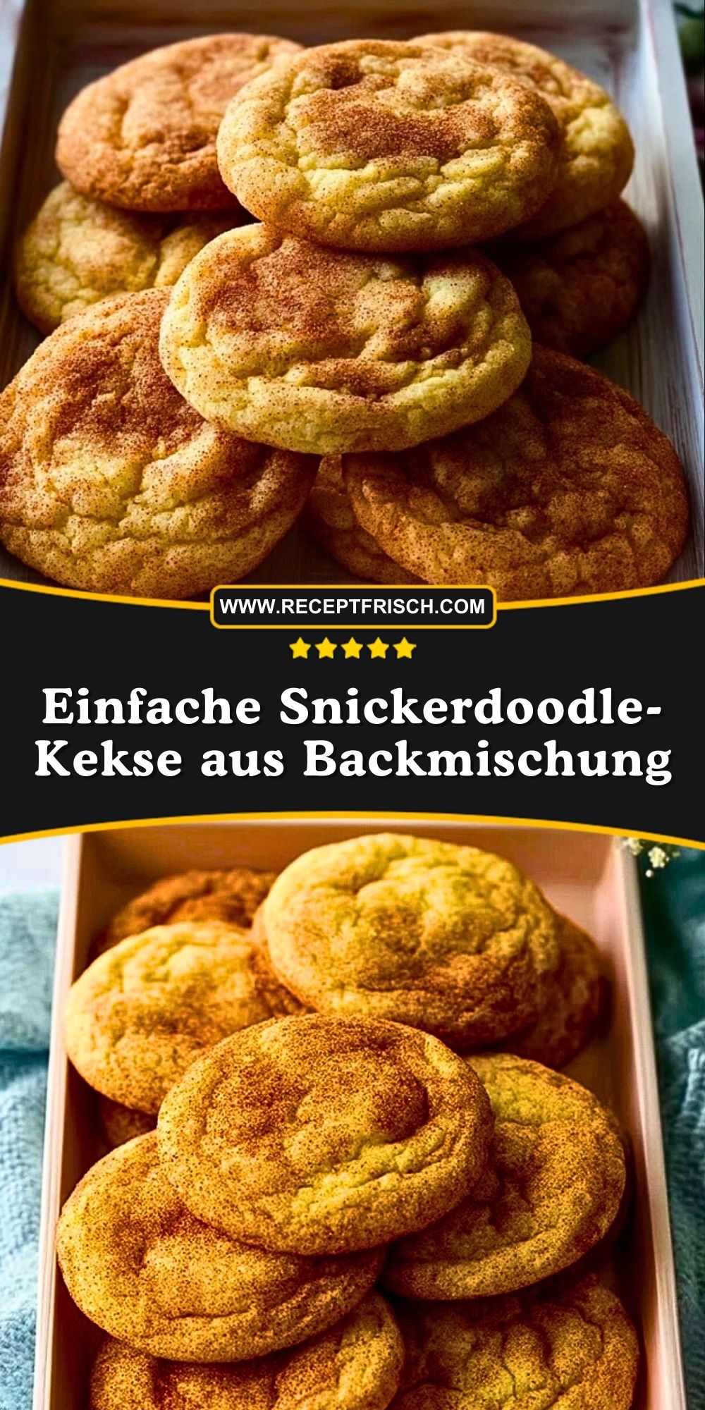 Weiche, aromatische Snickerdoodle-Kekse, die im Handumdrehen aus einer Backmischung entstehen – perfekt, wenn es schnell gehen soll. Mit feiner Zimtnote und süßer Kruste, ideal für spontane Genussmomente!