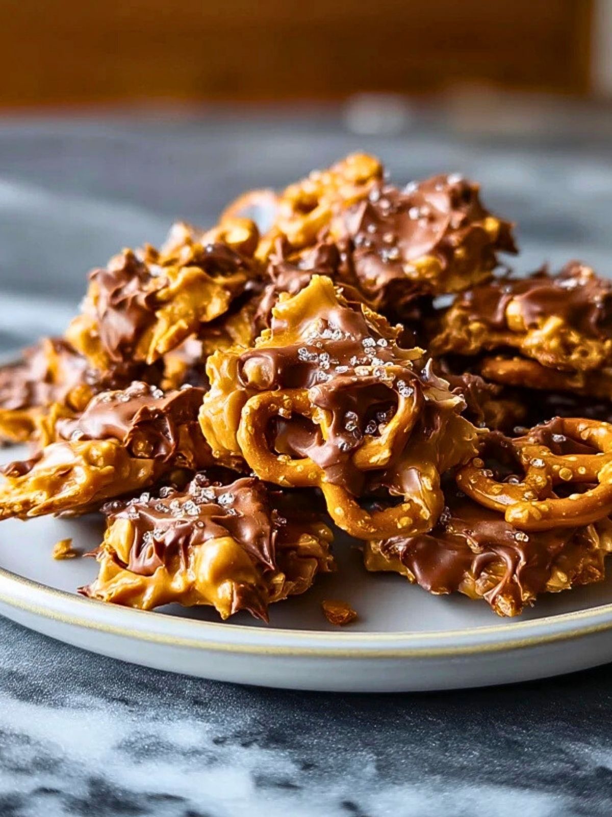 Die Kombination aus salzigen Mini-Brezeln und einer weichen, leicht zähen Erdnussbutter-Karamellschicht sorgt für einen unglaublichen Knuspereffekt. Die geschmolzene Schokolade obendrauf bringt Tiefe und Süße, während grobes Meersalz den Geschmack abrundet und die Aromen noch intensiver wirken lässt. Außerdem brauchst du keinen Backofen – ein Topf, eine Schüssel und ein Blech reichen aus.