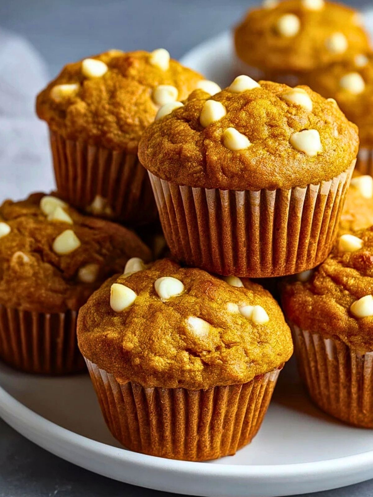 Saftige Muffins mit Kürbispüree und weißen Schokotropfen – ideal für den Herbst, wunderbar feucht und aromatisch. Perfekt als Snack oder zum Kaffee!