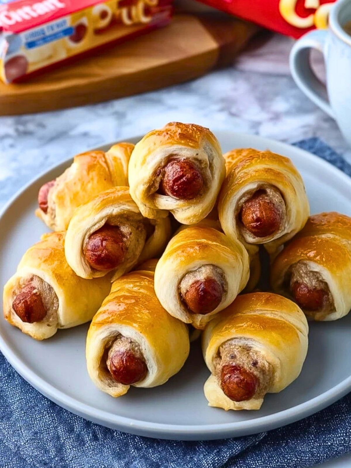 Du kannst vegane Würstchen und veganen Zimtschneckenteig verwenden – klappt genauso gut!