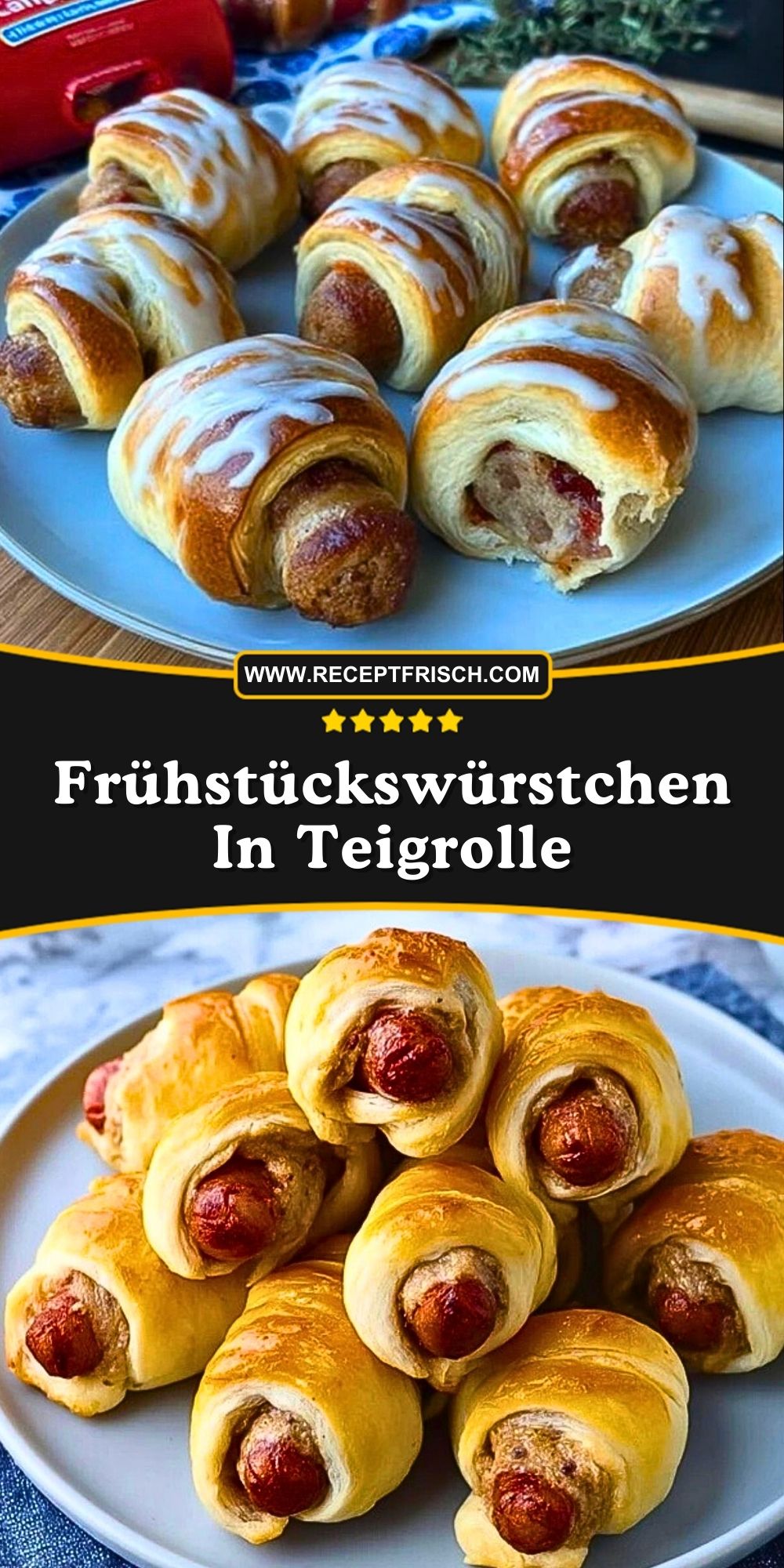 Saftige Frühstückswürstchen, umhüllt von fluffigem Zimtschnecken-Teig und mit süßem Zuckerguss veredelt. Das perfekte Rezept für alle, die ein herzhaft-süßes Frühstück lieben – schnell gemacht und ideal zum Vorbereiten oder Mitnehmen!