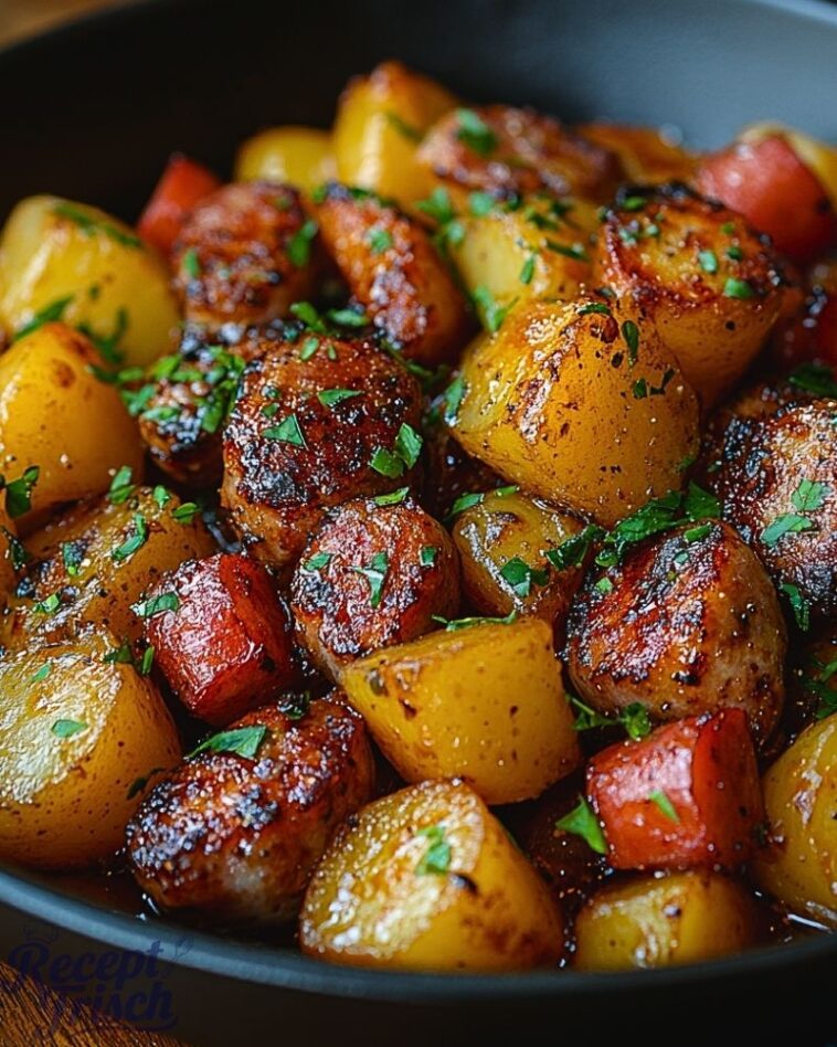 Geräucherte Wurst und Kartoffelpfanne – ein herzhaftes, rustikales Gericht, das mich an gemütliche Abende in der Küche erinnert. Die Kombination aus rauchiger Wurst, goldbraun gebratenen Kartoffeln und aromatischen Gewürzen sorgt für ein einfaches, aber unglaublich schmackhaftes Essen. Es ist das perfekte Rezept, wenn ich etwas Deftiges und Sättigendes möchte, ohne viel Zeit in der Küche zu verbringen.