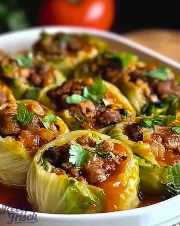 Was mich besonders begeistert, ist die Vielseitigkeit dieses Rezepts. Es eignet sich sowohl für festliche Anlässe als auch als herzhafte Mahlzeit im Alltag. Die Kombination aus saftigem Fleisch, würziger Sauce und dem knackigen Kohlblatt sorgt für einen echten Gaumenschmaus.