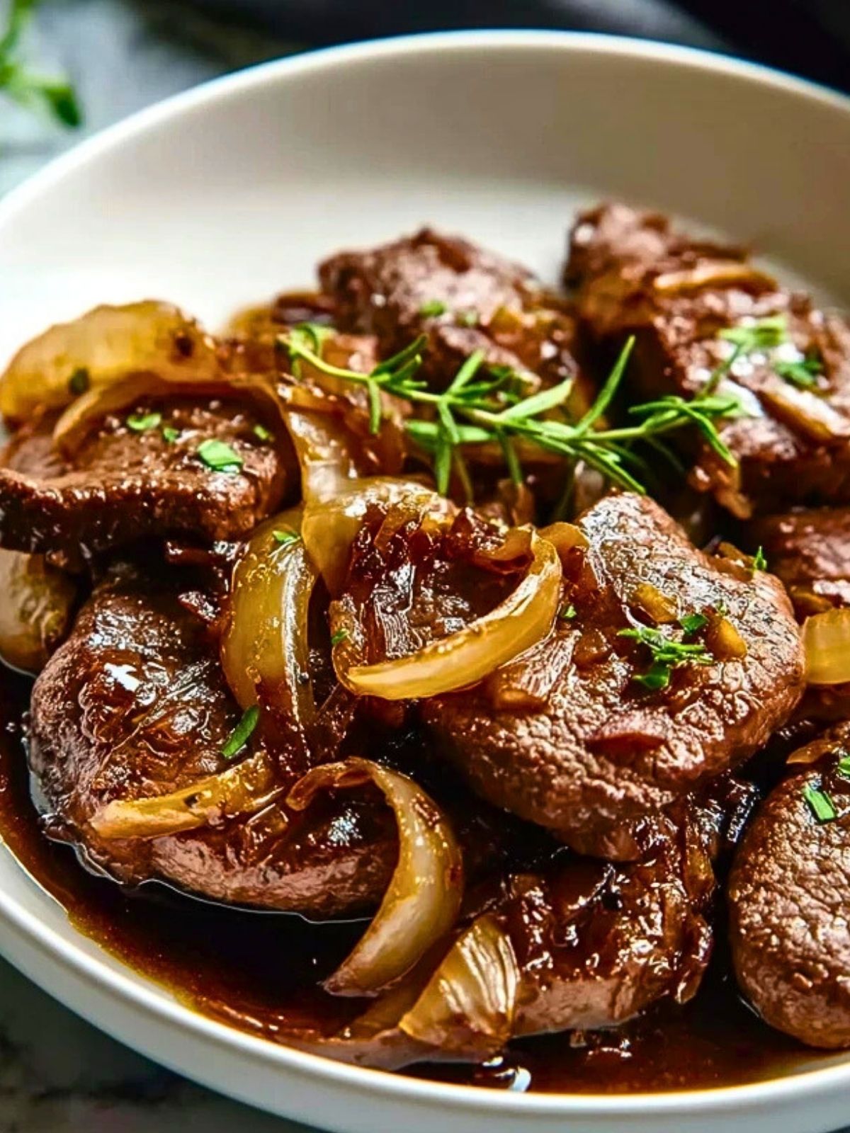 Karamellisierte Zwiebel-Rinderleber ist ein klassisches deutsches Wohlfühlgericht: Zarte Leber, sanft gebraten, kombiniert mit butterweichen, goldbraunen Zwiebeln mit einer dezenten Karamellnote. Dieses Gericht überzeugt durch seine kräftigen Aromen, ist unkompliziert zuzubereiten und liefert reichlich Eisen und Proteine. Perfekt zu Kartoffelpüree, Bratkartoffeln oder frischem Bauernbrot!