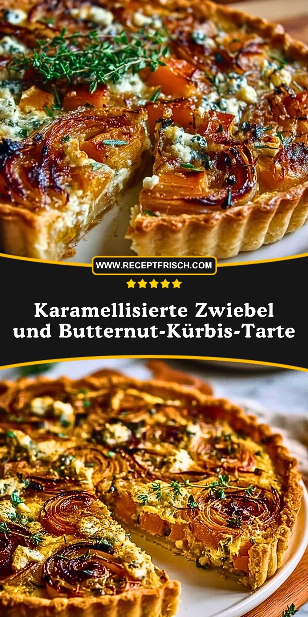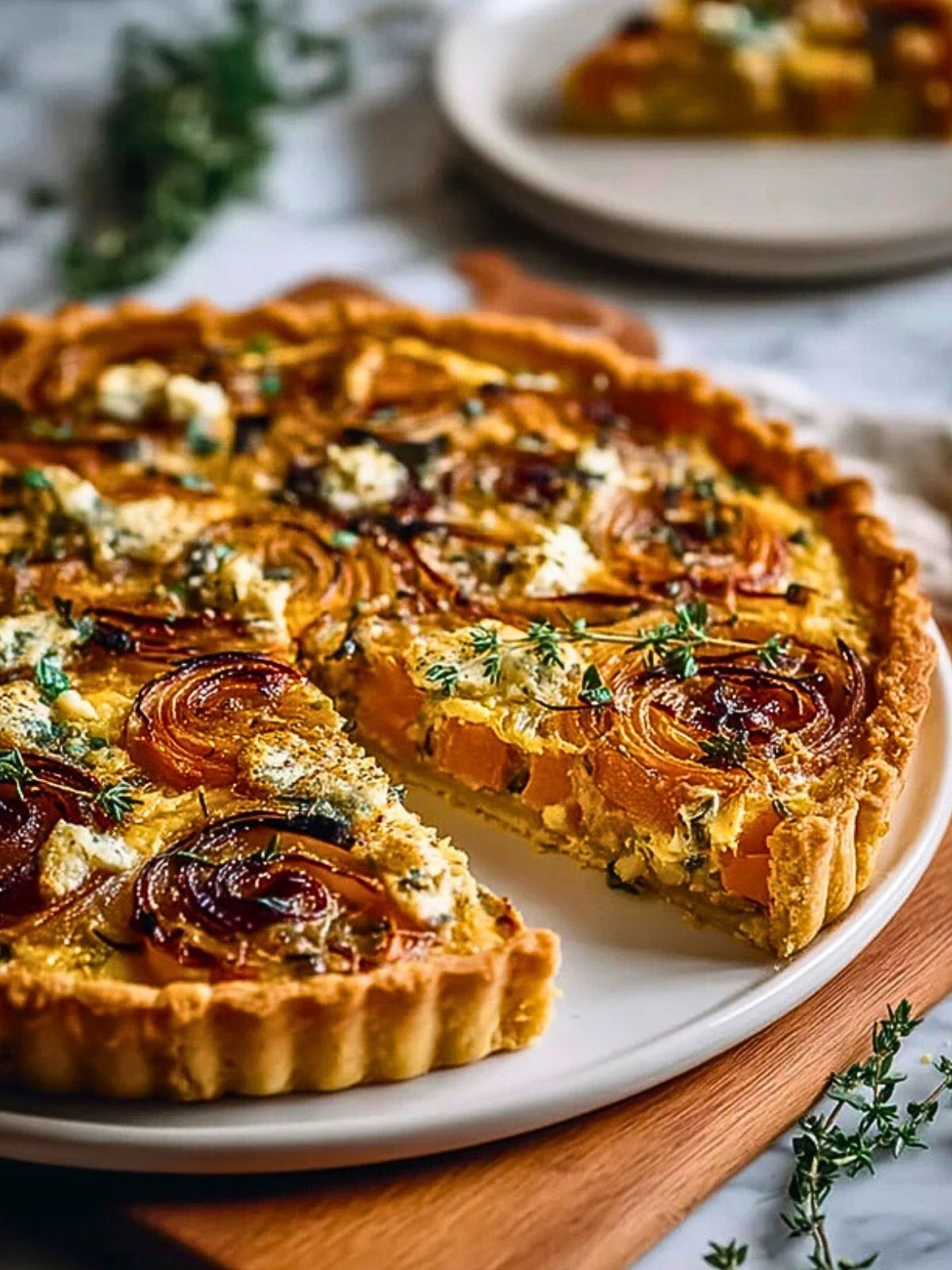 Eine herzhafte Tarte mit karamellisierten Zwiebeln, nussigem Butternut-Kürbis und cremigem Ziegenkäse. Perfekt als Hauptgericht oder auf dem Buffet, ideal vorzubereiten und ein echtes Highlight für Herbst und Winter!