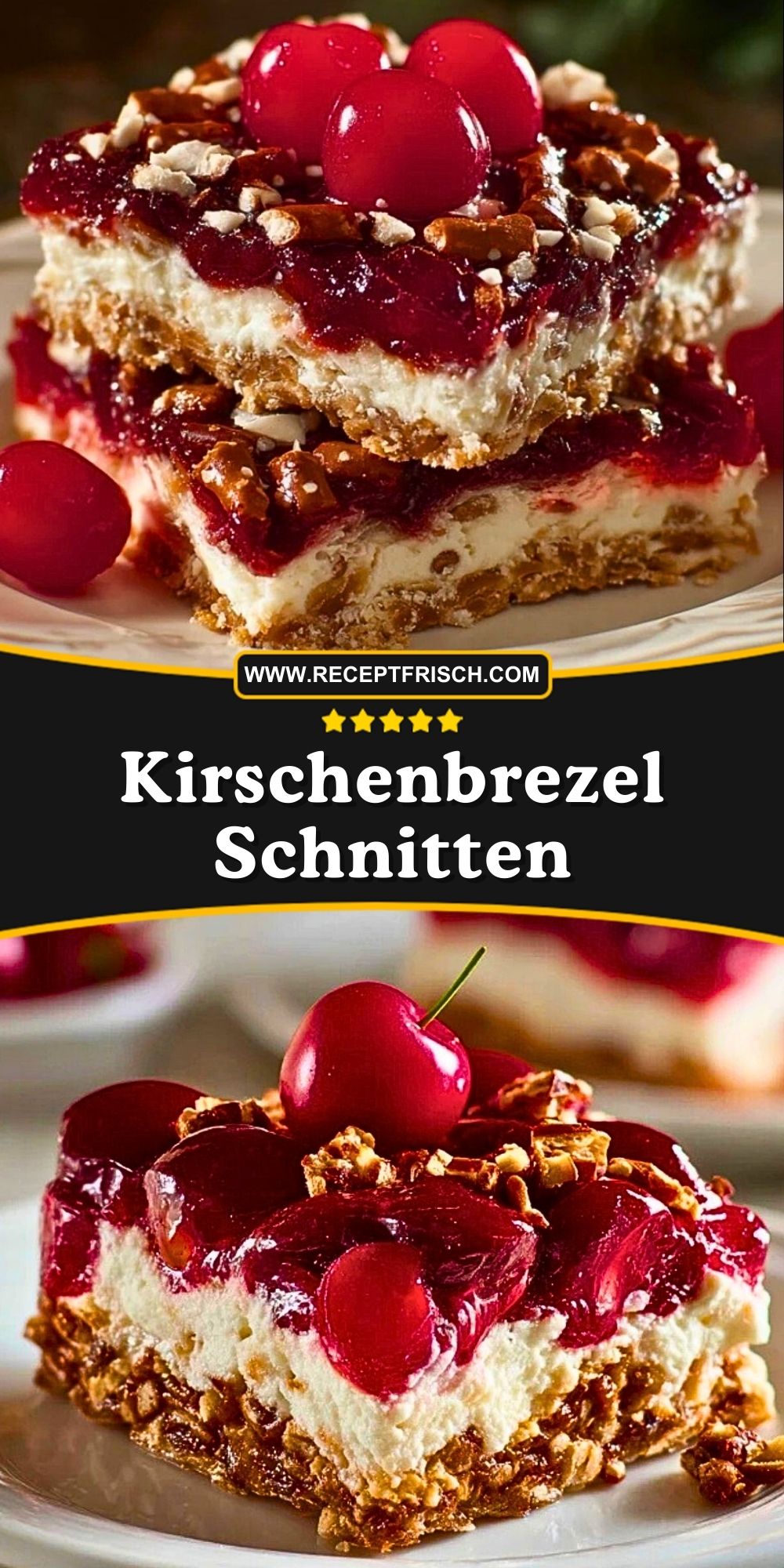 Mit jedem Bissen erhältst du das Beste aus drei Welten: Der buttrig-salzige Brezelboden gibt Biss, die Frischkäse-Sahne-Schicht bringt cremige Leichtigkeit und die Kirschenschicht sorgt für fruchtige Frische. Die Schnitten sind einfach vorzubereiten und sorgen auf jedem Buffet für einen echten Wow-Effekt!