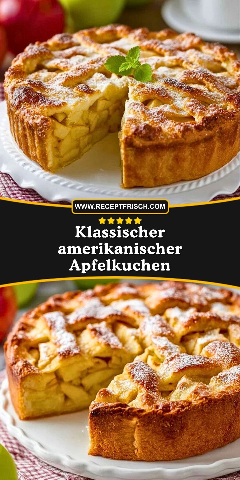 Der klassische amerikanische Apfelkuchen überzeugt mit zartem Mürbeteig, saftigen Äpfeln und einer Prise Zimt. Die doppelte Teighülle sorgt für Knusprigkeit, während die Apfelfüllung angenehm fruchtig bleibt. Perfekt für gemütliche Kaffeerunden oder besondere Anlässe!
