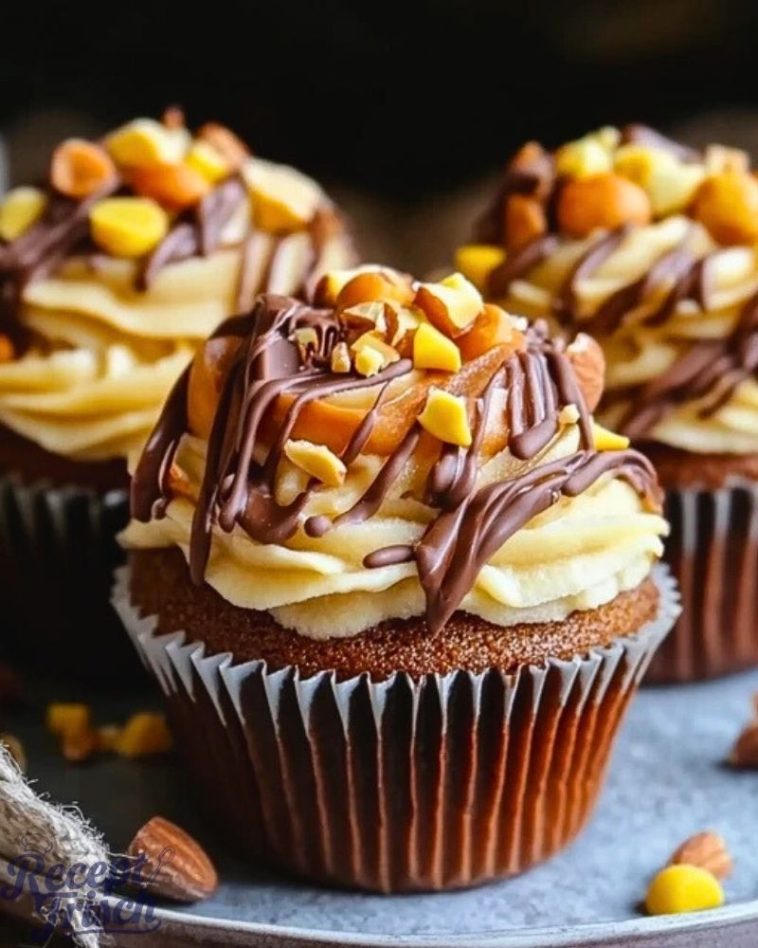 Diese klebrigen Schokoladen-Erdnussbutter Cupcakes kombinieren einen saftigen Schokoladenteig mit cremigem Erdnussbutter-Frosting und knusprigen Erdnusstückchen. Perfekt für Partys, Geburtstage oder als besonderer Genuss zwischendurch!