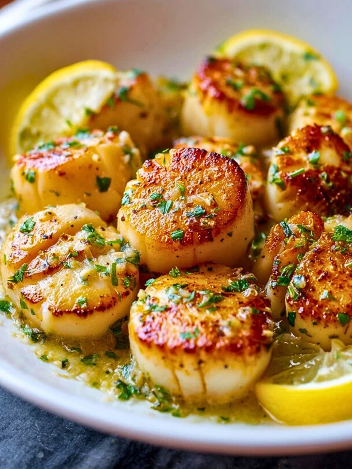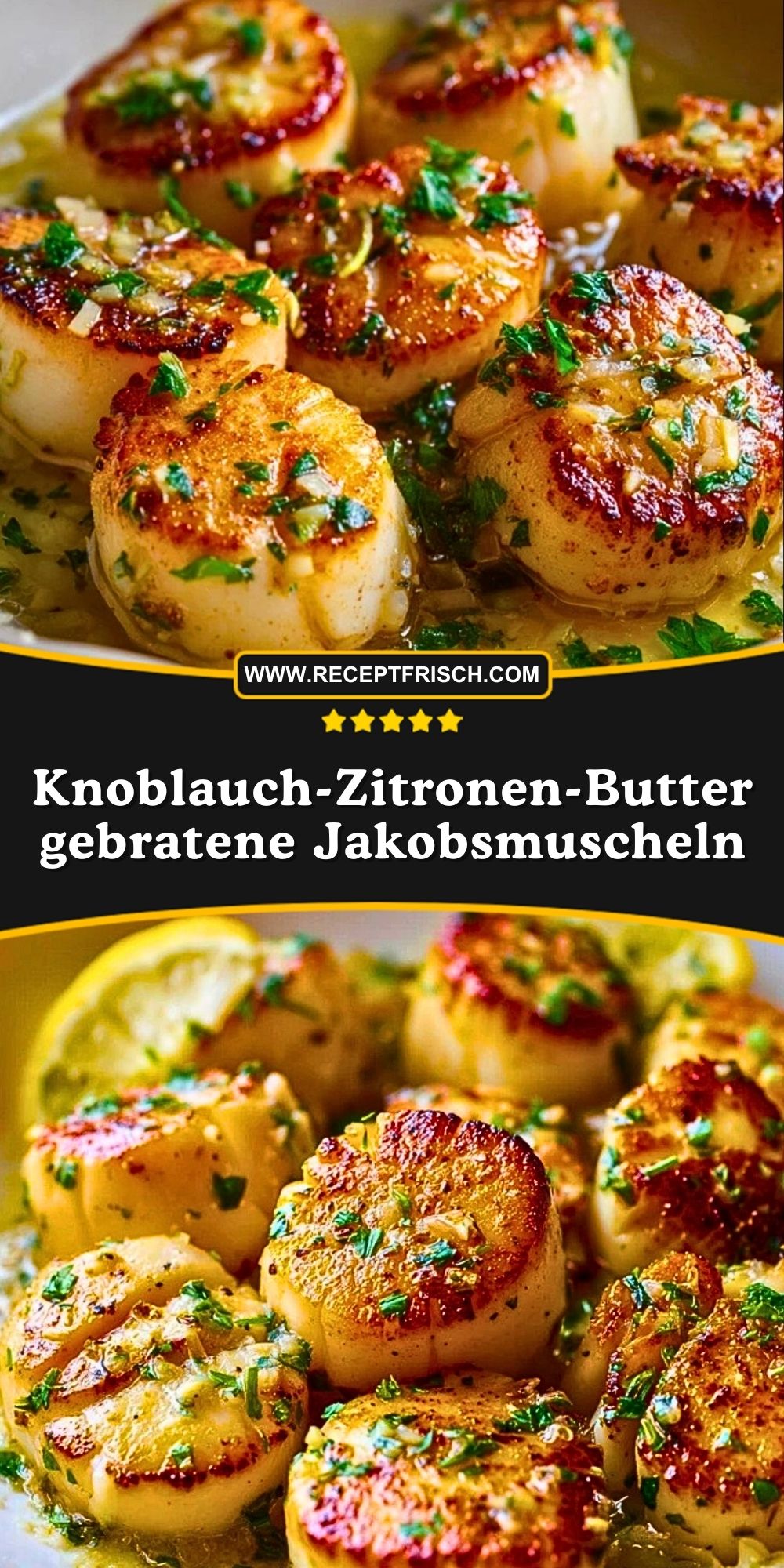 Diese gebratenen Jakobsmuscheln mit Knoblauch-Zitronen-Butter sind außen goldbraun und innen zart – ein echter Genuss für Meeresfruchtliebhaber. In nur wenigen Minuten steht ein elegantes Gericht auf dem Tisch, das als Vorspeise oder Hauptgericht mit Pasta oder Baguette begeistert.