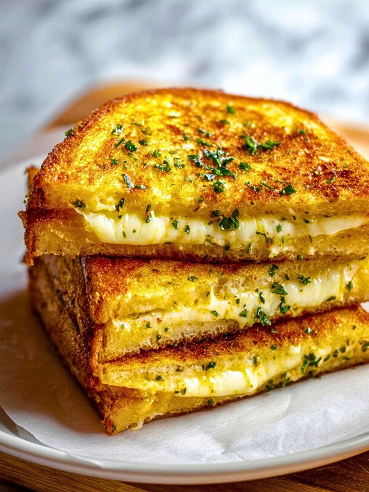Cremig-zart geschmolzener Käse trifft auf aromatisches, knuspriges Knoblauchbrot – dieses Sandwich ist der ultimative Genuss für Käseliebhaber. Perfekt für ein schnelles Mittagessen, als Snack oder wenn du Gäste beeindrucken möchtest. Mit frischer Petersilie und goldbrauner Kruste schmeckt es einfach unwiderstehlich!
