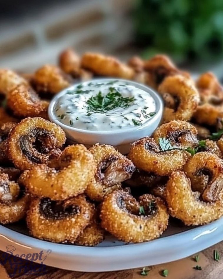 Knusprig gebratene Pilze sind ein perfekter Snack oder eine köstliche Beilage. Die goldbraune Panade umhüllt saftige Pilze, während der cremige Ranch-Dip für den perfekten Geschmack sorgt. Ideal für Partys oder als herzhafter Genuss zwischendurch!