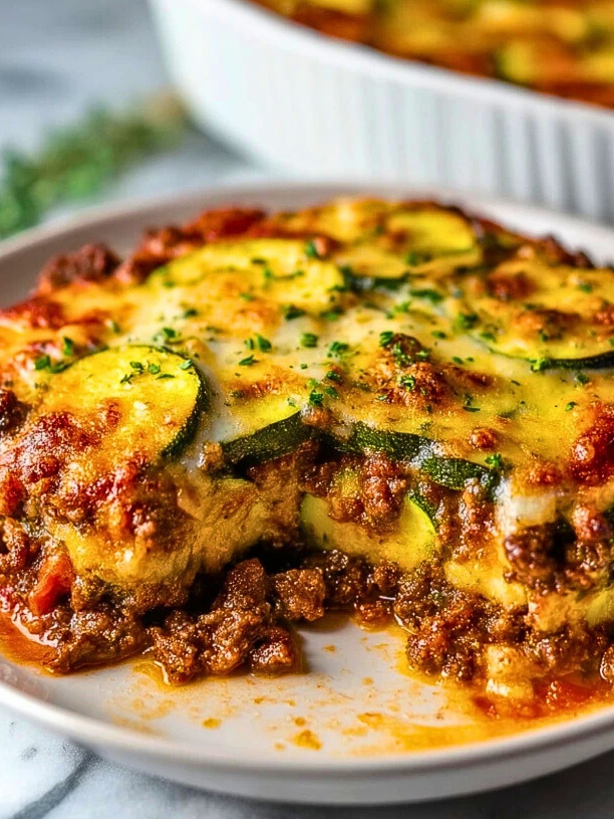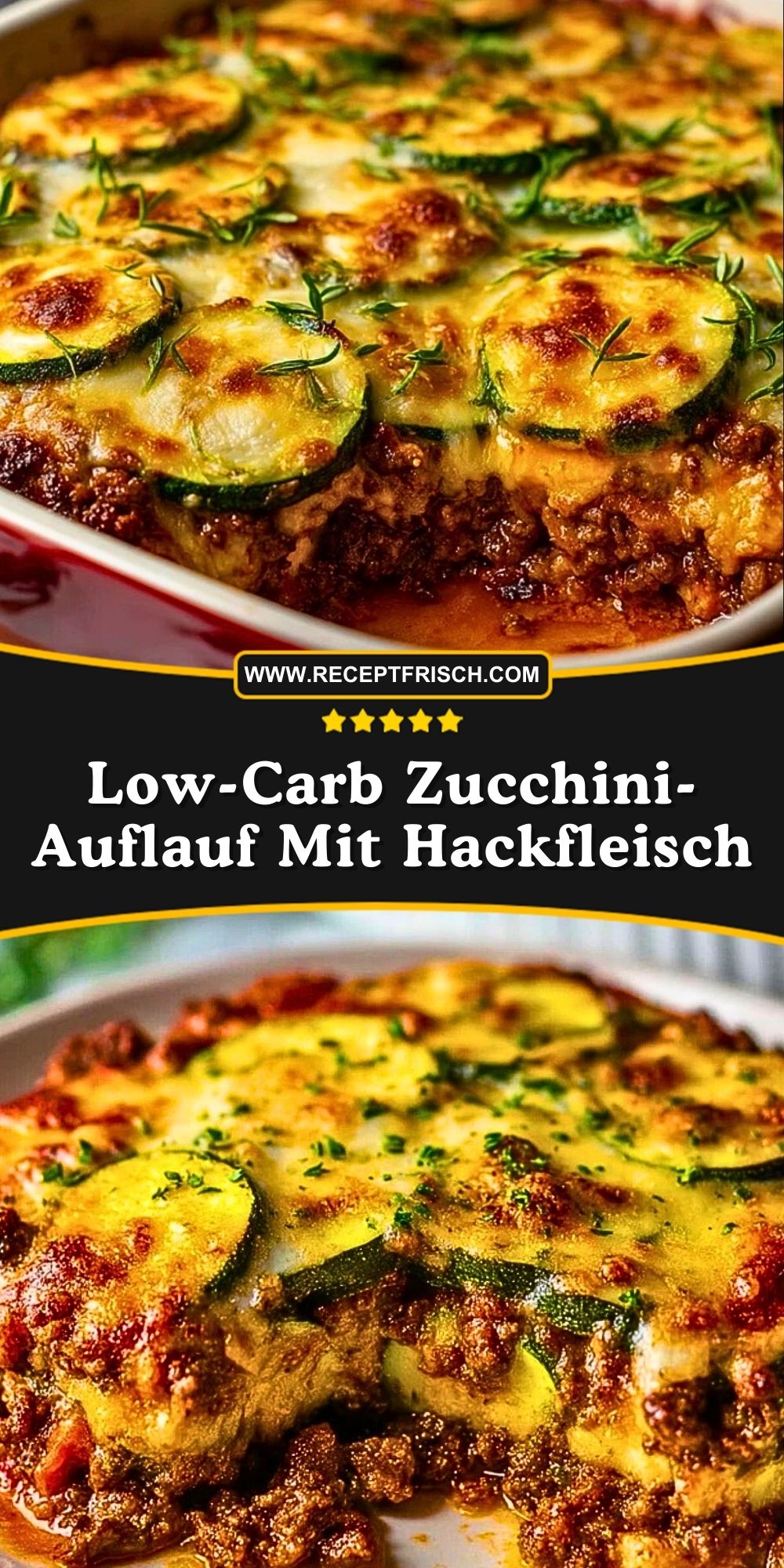 Ein herzhaft-cremiger Low-Carb Zucchini-Auflauf mit würzigem Hackfleisch, frischen Zucchini und goldener Käsekruste – das perfekte Familiengericht für eine gesunde, kohlenhydratarme Ernährung!
