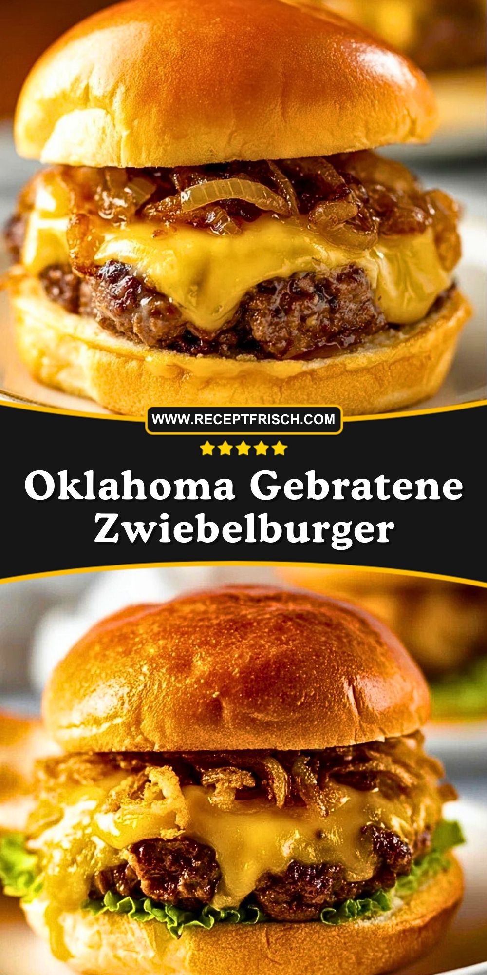 Der Oklahoma Gebratene Zwiebelburger vereint saftiges Rindfleisch mit einer großzügigen Portion karamellisierter Zwiebeln, geschmolzenem Cheddar und fluffigen Brioche-Brötchen. Perfekt für ein amerikanisches Diner-Feeling zuhause – aromatisch, sättigend und einfach unwiderstehlich!