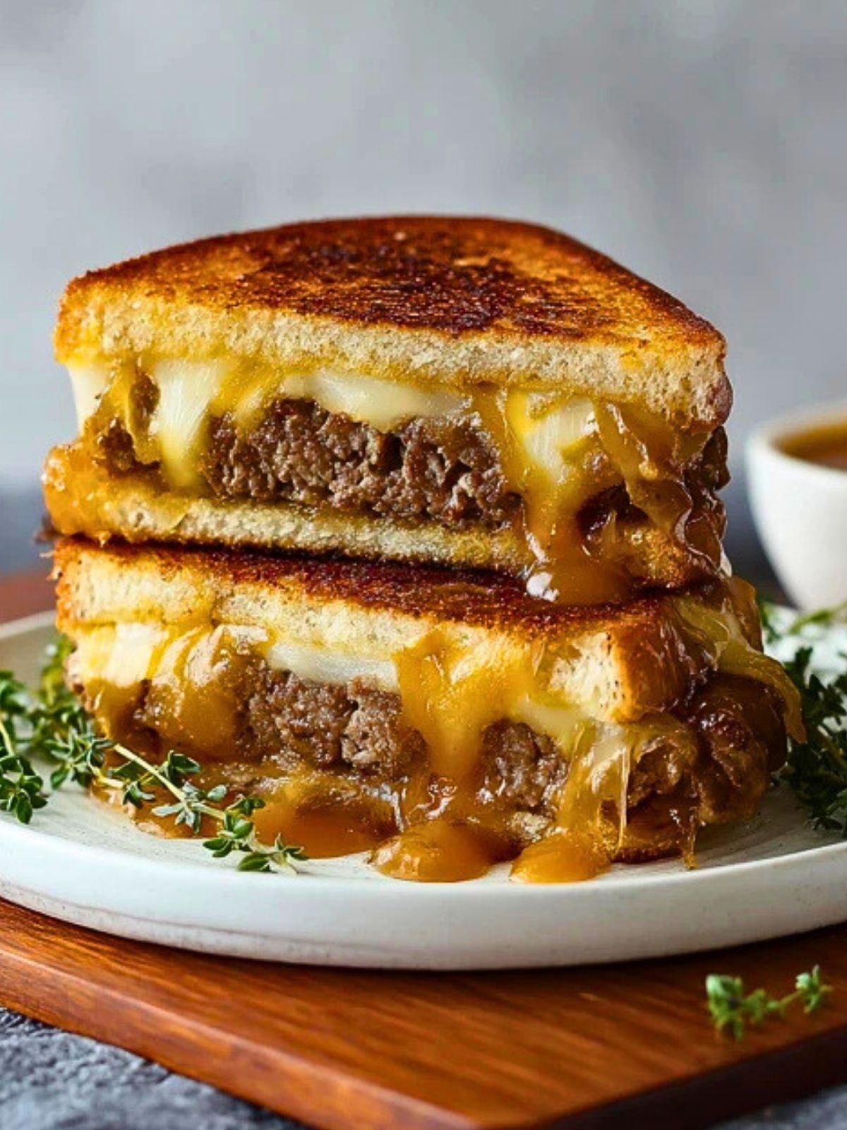 Patty Melts mit Geheimsoße sind die perfekte Mischung aus Burger und Sandwich: Saftige Hackfleisch-Patties, karamellisierte Zwiebeln, reichlich geschmolzener Käse und eine würzige Geheimsoße werden zwischen knusprig gebratenem Brot vereint. Ein Diner-Klassiker, der zuhause schnell gemacht ist und mit jedem Bissen begeistert!