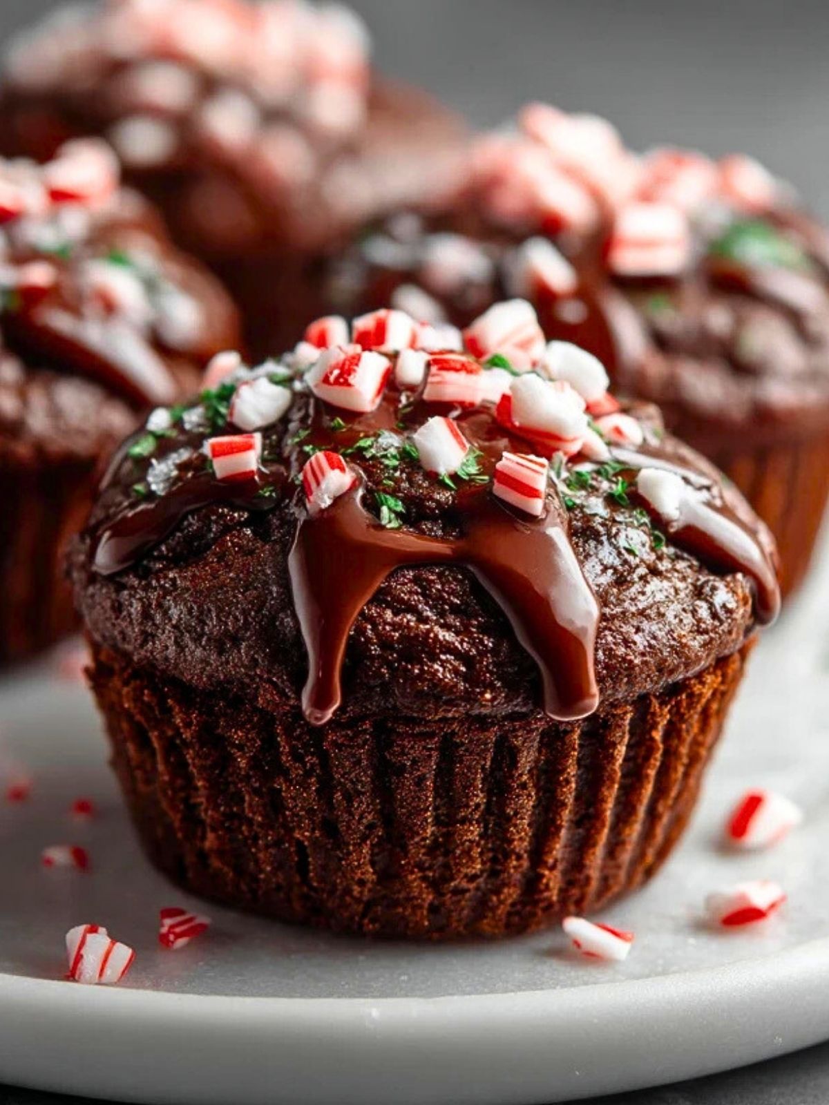 Saftig-schokoladige Muffins mit frischer Pfefferminznote, gekrönt von einem glänzenden Schokoguss und knackigen Pfefferminzbonbons. Ein Genuss für alle Sinne, besonders in der Winter- und Weihnachtszeit!