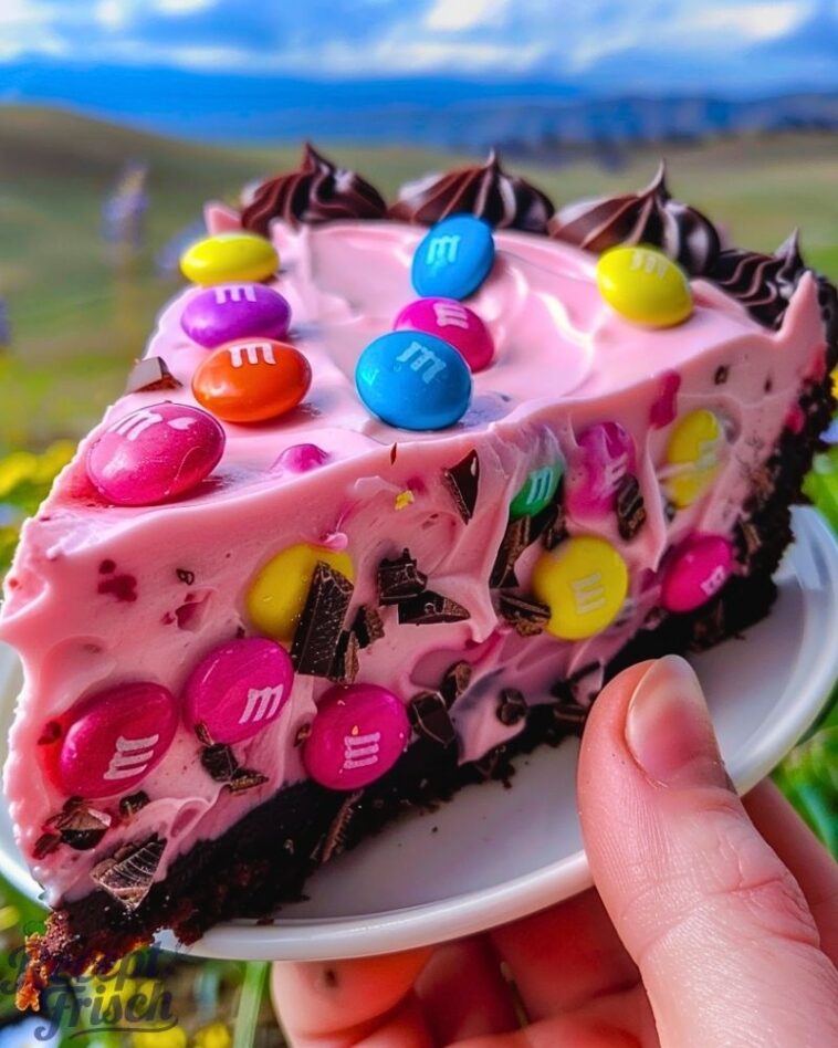 Dieser farbenfrohe Käsekuchen ist nicht nur ein Fest für den Gaumen, sondern auch für die Augen. Die leuchtenden M&M’s sorgen für den ultimativen Knusper-Effekt, während die cremige Füllung mit ihrem zarten Rosa-Ton sofort ins Auge sticht. Perfekt für Geburtstage, Sommerpartys oder einfach als süße Belohnung zwischendurch!
