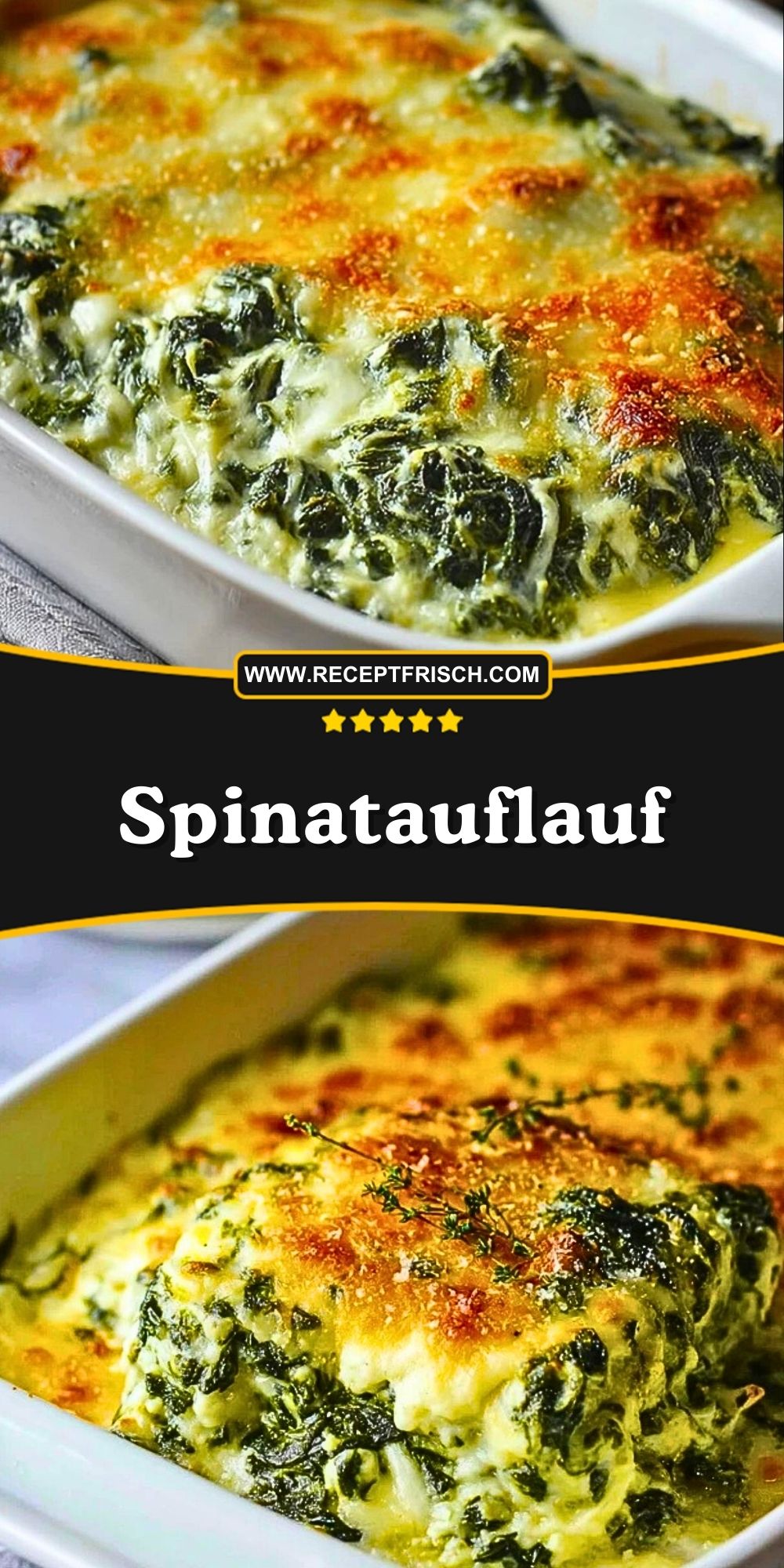 Cremiger Spinatauflauf mit zarter Béchamelsauce, goldener Käsekruste und herzhaften Aromen. Perfekt als vegetarisches Hauptgericht oder Beilage – einfach, klassisch und immer ein Genuss!