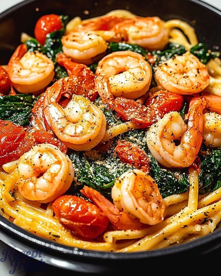 Diese Tomaten-Spinat-Garnelen-Nudeln sind ein schnelles, gesundes und unglaublich leckeres Gericht, das sich perfekt für ein unkompliziertes Abendessen eignet. Die Kombination aus saftigen Garnelen, süßen Kirschtomaten und würzigem Knoblauch macht dieses Rezept zu einem echten Genuss.