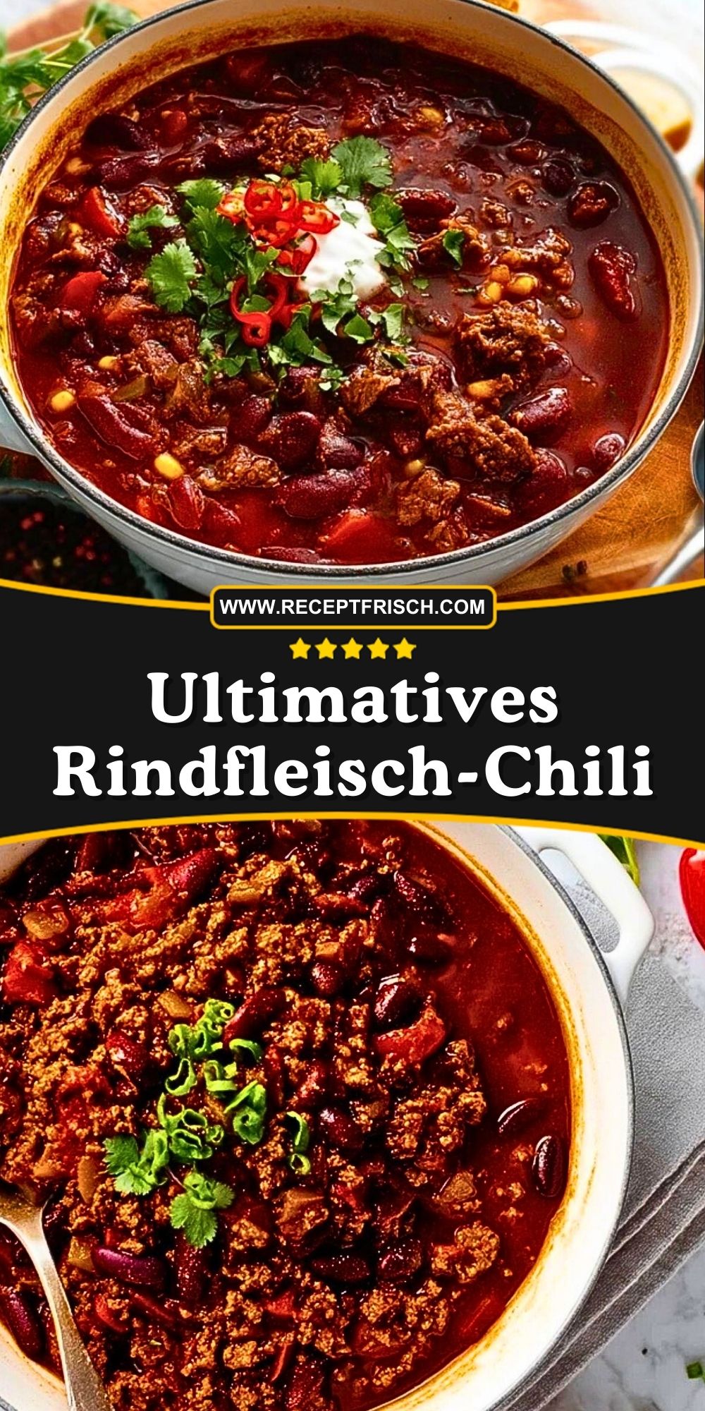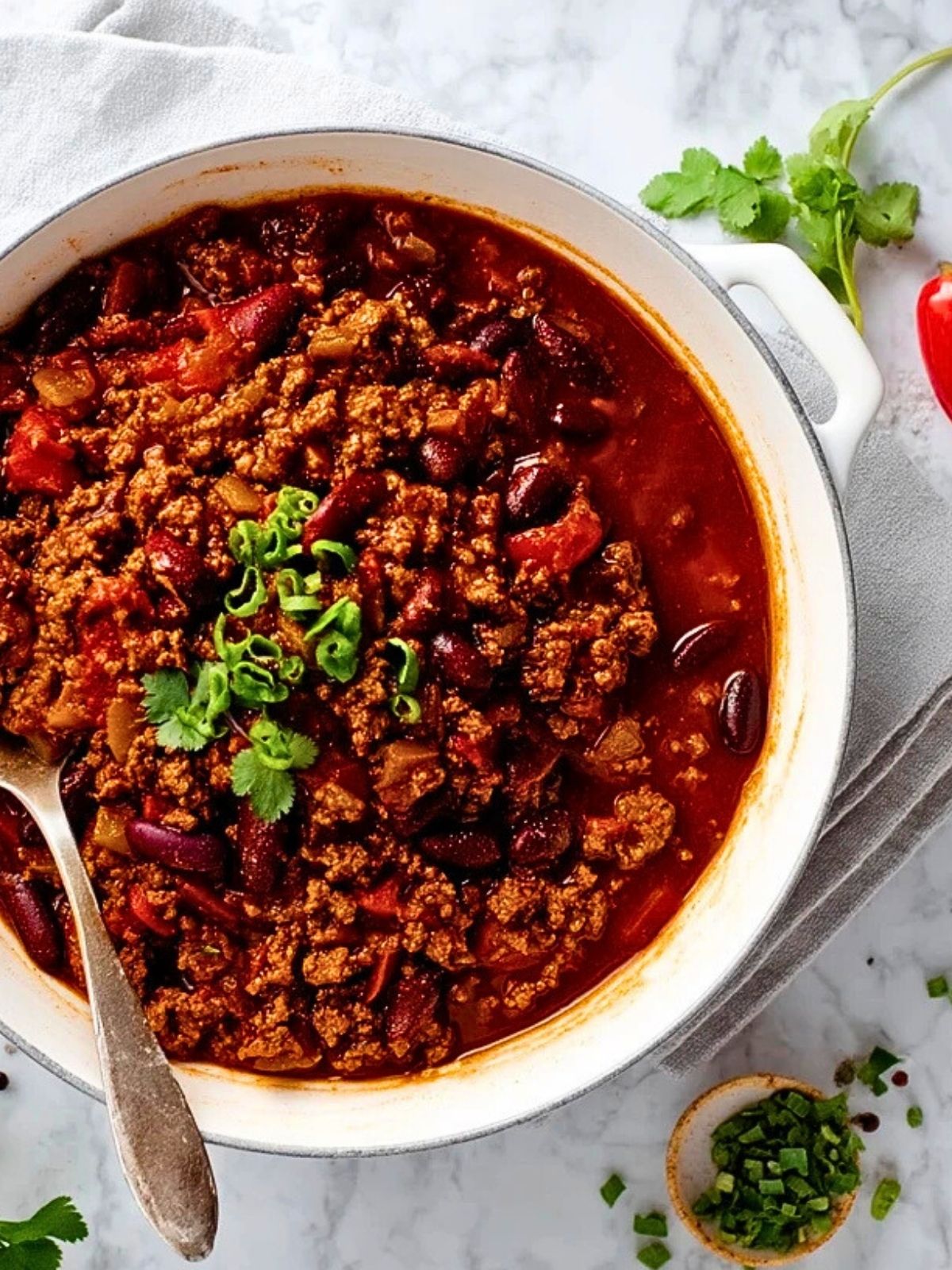 Ob als Partysnack, schnelles Abendessen oder Meal Prep für die Woche: Dieses Chili überzeugt mit seiner herzhaften Tiefe und der feinen Balance aus Schärfe, Süße und Säure. Frische Kräuter oder ein Klecks Sauerrahm machen es zum echten Genuss. Du kannst es klassisch mit Brot, Reis oder Tortilla-Chips servieren – ganz wie es dir am besten schmeckt.