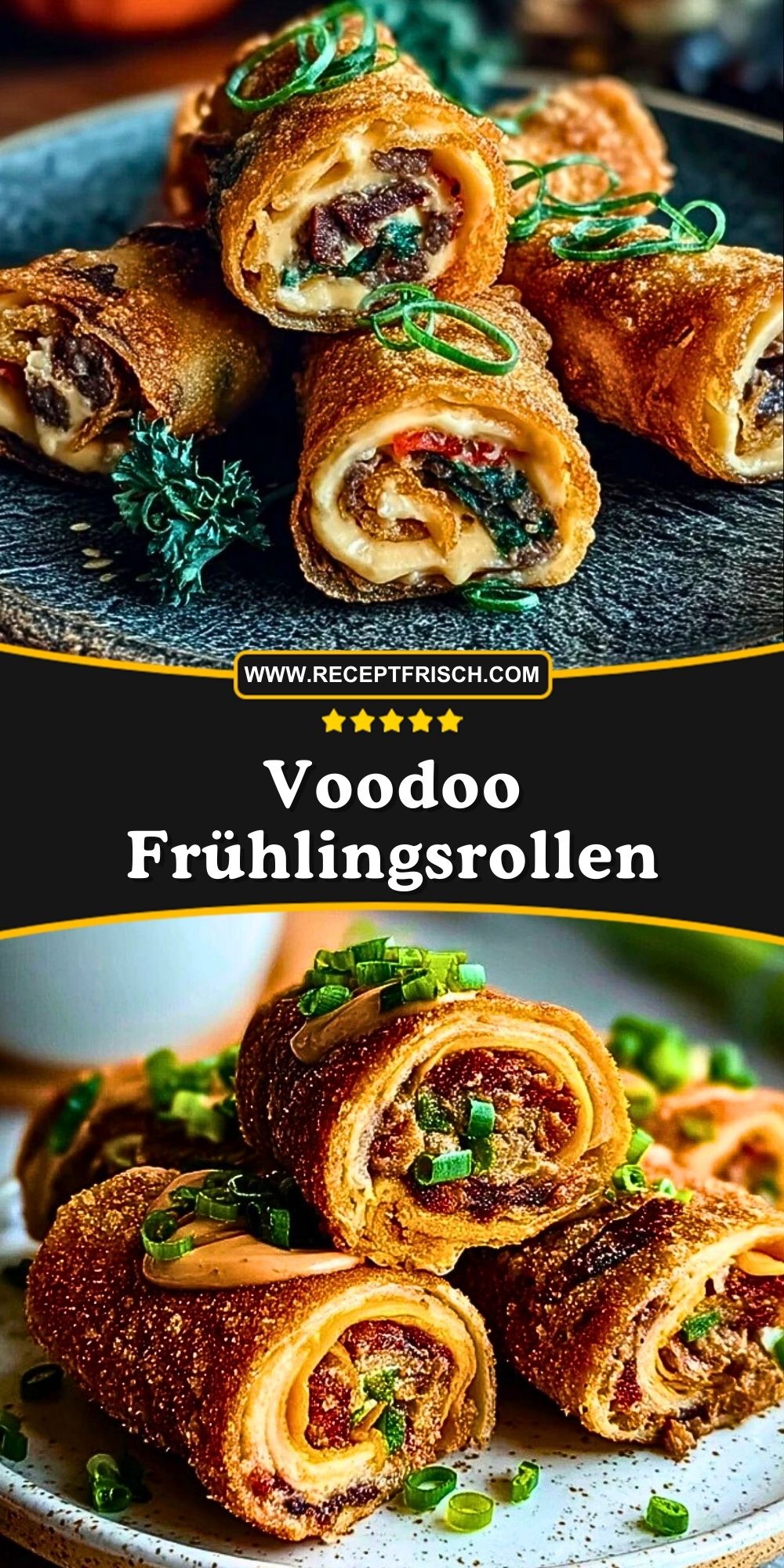Diese Voodoo Frühlingsrollen sind der Inbegriff von knusprigem, würzigem Genuss! Außen goldbraun und herrlich kross, innen eine aromatische Füllung aus cremigem Süßkartoffelpüree, rauchigem Bohnenragout und geschmolzenem Käse – ein wahres Geschmacksfeuerwerk für alle, die Lust auf etwas ganz Besonderes haben.