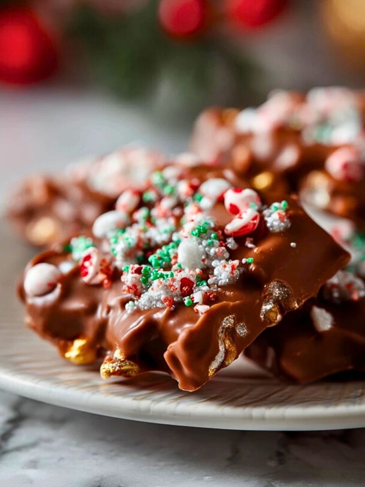 Weihnachtliche Knabbereien aus dem Slow Cooker sind die perfekte Kombination aus Schokolade, Nüssen, Brezeln und Keksstückchen. Sie sind nicht nur einfach zubereitet, sondern auch ein köstliches Geschenk oder Highlight auf jeder weihnachtlichen Kaffeetafel. Die bunte Streudeko sorgt für festlichen Glanz!