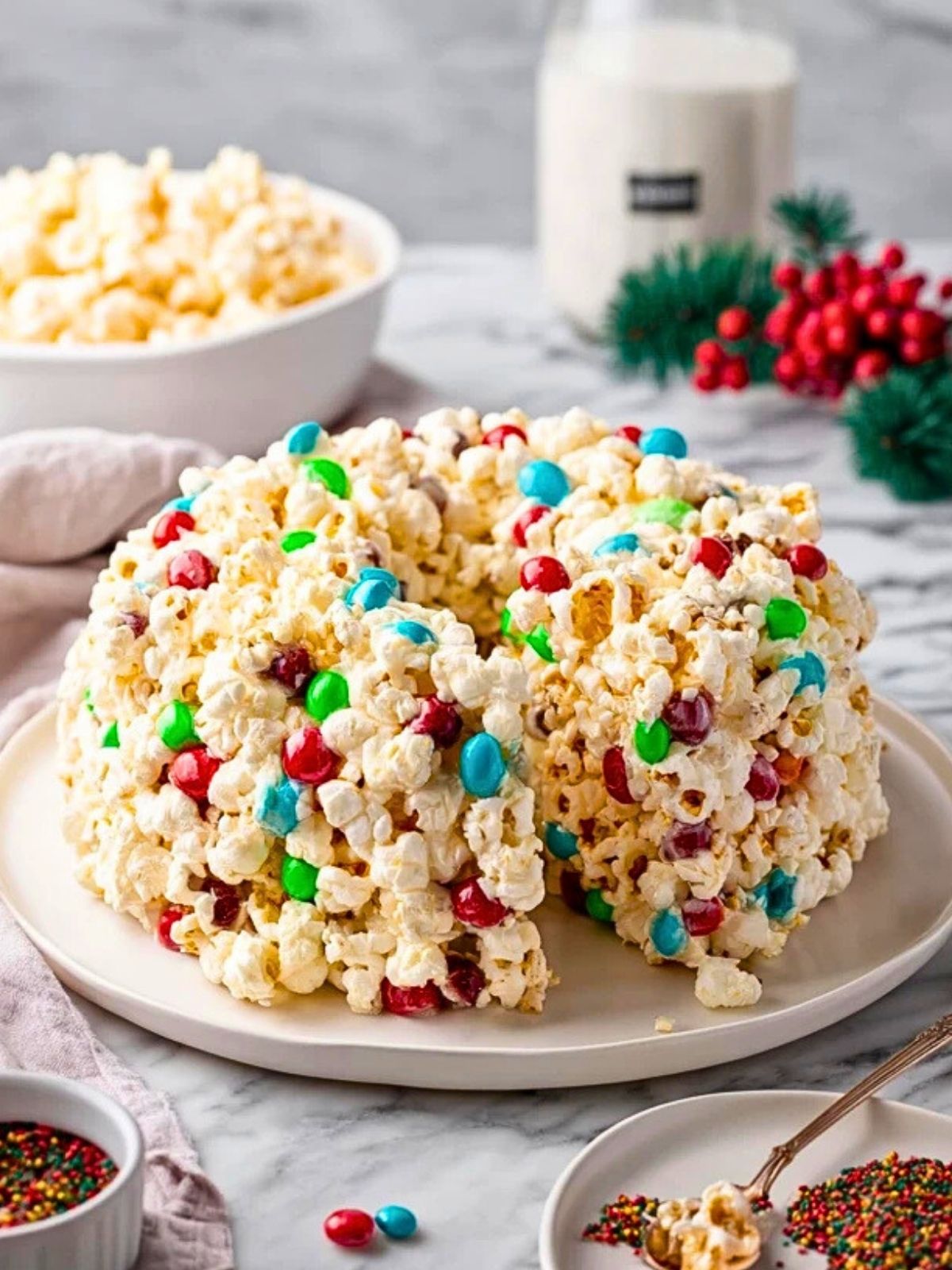 Ein herrlich bunter, weihnachtlicher Popcornkuchen – ohne Backen, aber mit dem gewissen Wow-Effekt! Luftiges Popcorn wird mit Marshmallows, Butter und bunten Schokolinsen zu einem fröhlichen Kuchen geformt. Perfekt für Adventspartys, als Mitbringsel oder als süßes Geschenk aus der Küche.
