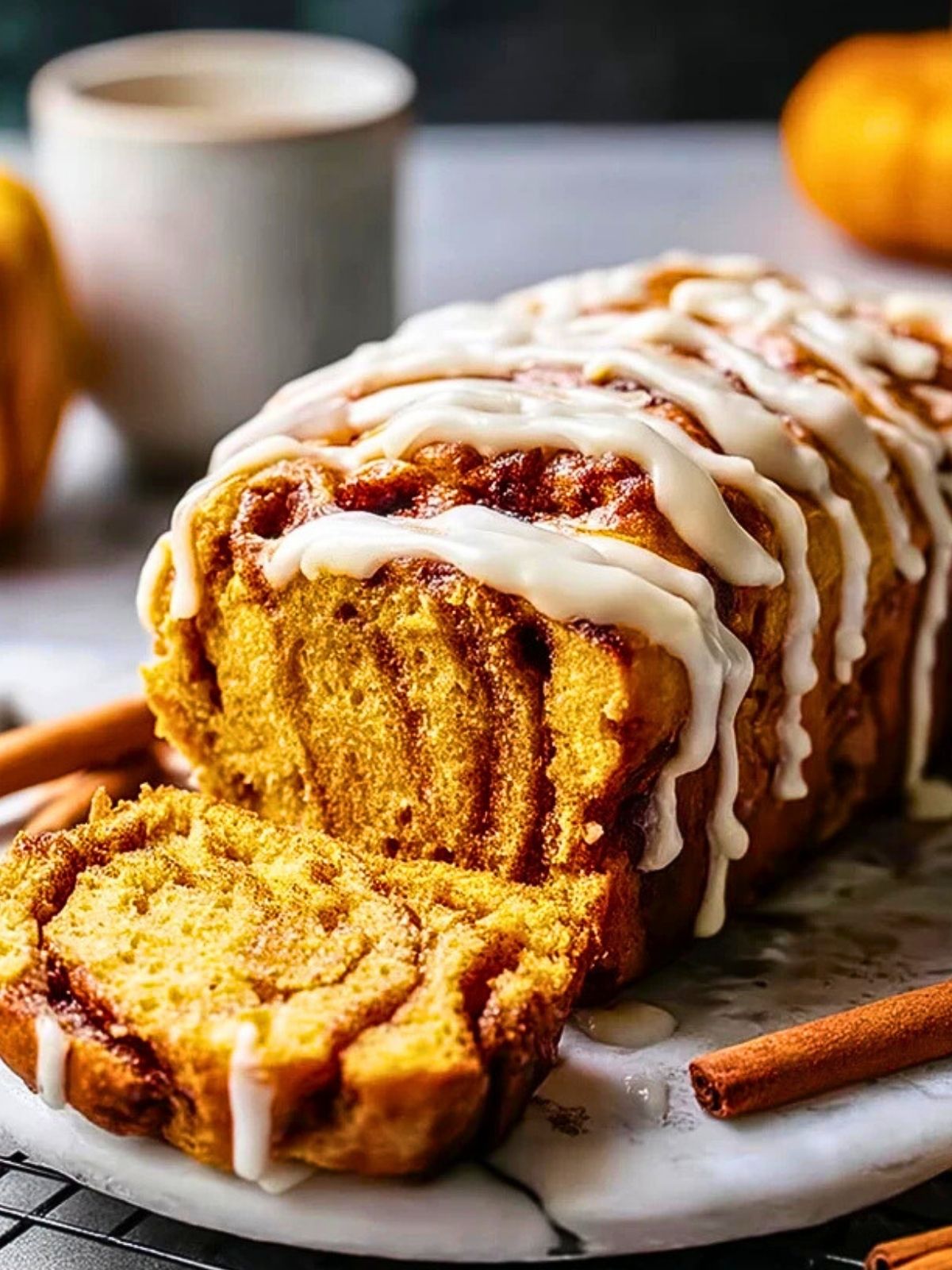 Zimtrollen-Kürbisbrot mit Frischkäseglasur