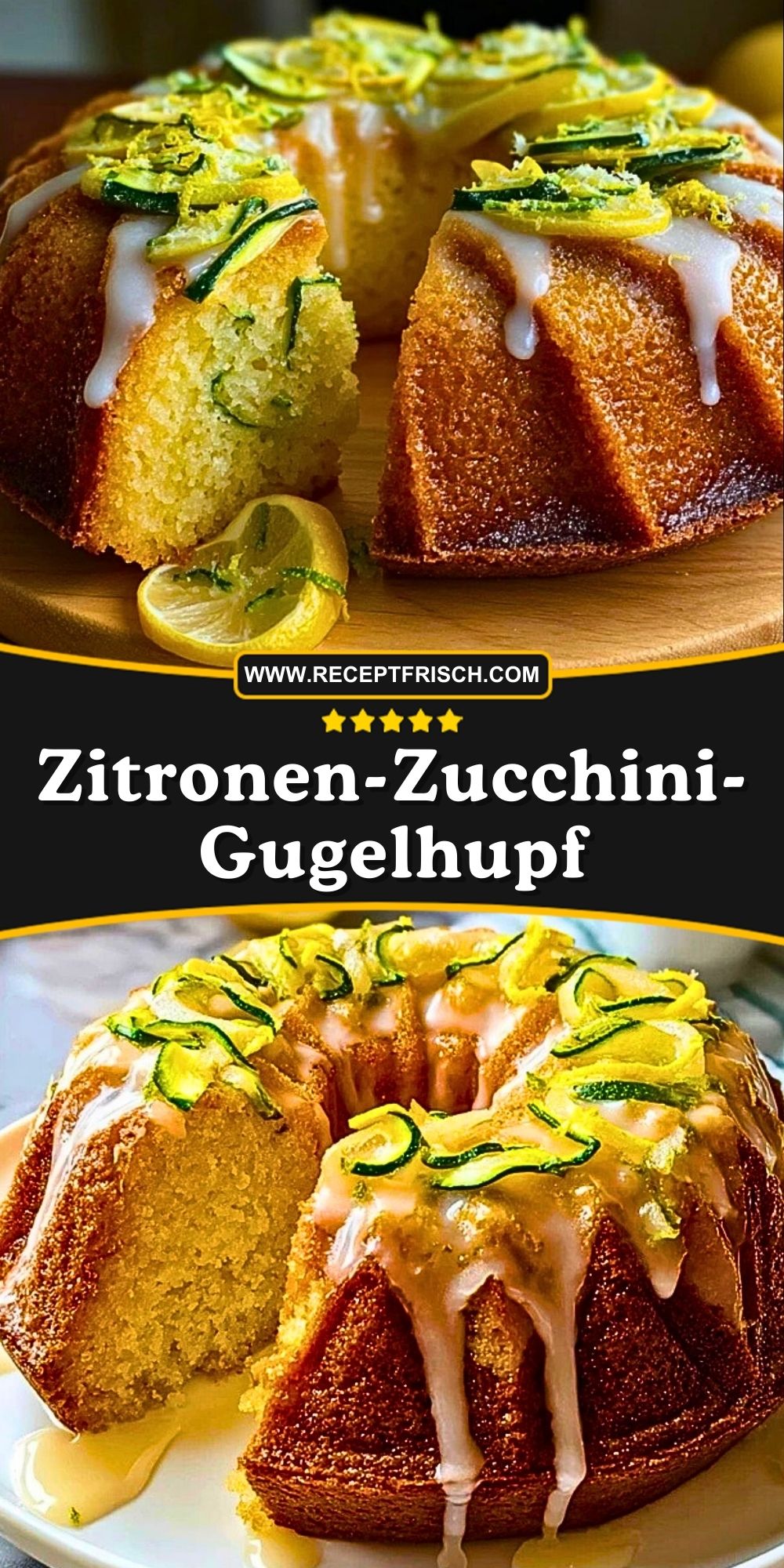 Mit einem zarten Zitronenguss und dekorativen Zitronen- und Zucchinistreifen ist dieser Gugelhupf ein Hingucker auf jedem Kuchenbuffet. Er eignet sich sowohl für den Nachmittagskaffee als auch für besondere Anlässe, bei denen ein außergewöhnlicher, aber unkomplizierter Kuchen gefragt ist.