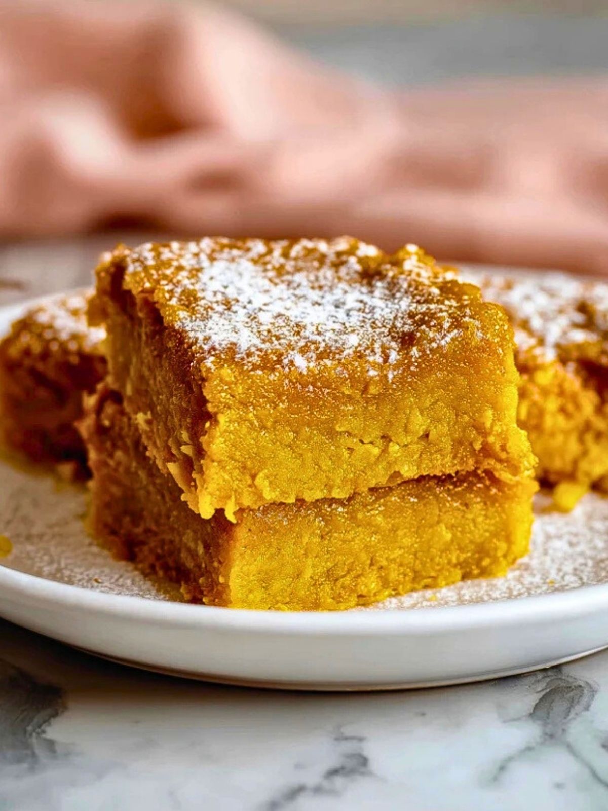 Kürbisschnitten in der Form abkühlen lassen, dann in Rechtecke schneiden und genießen.
